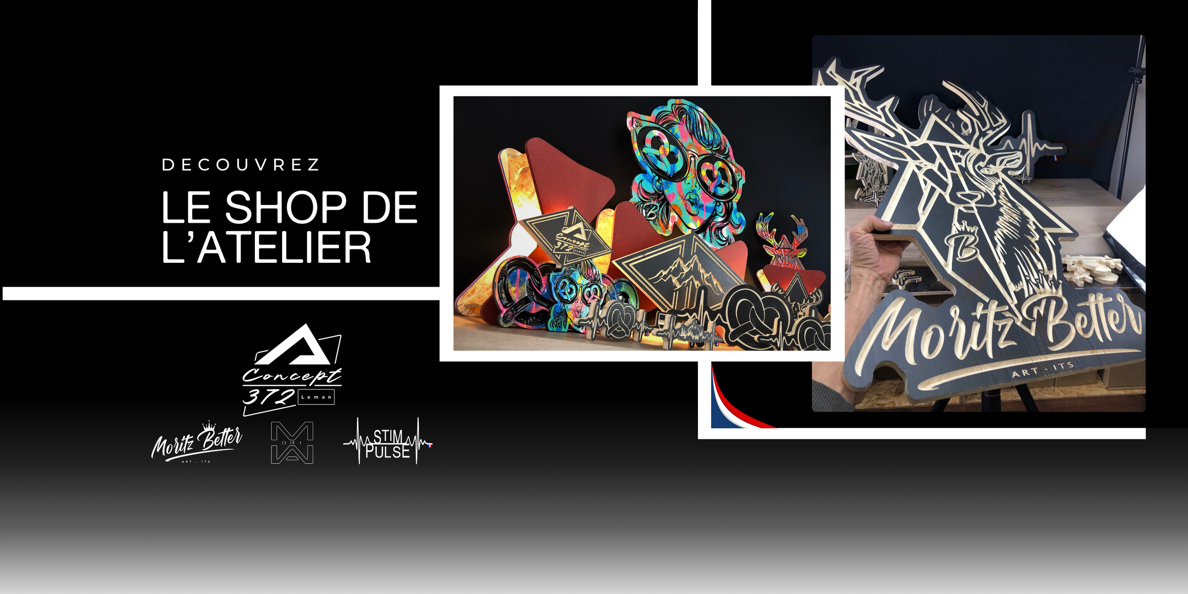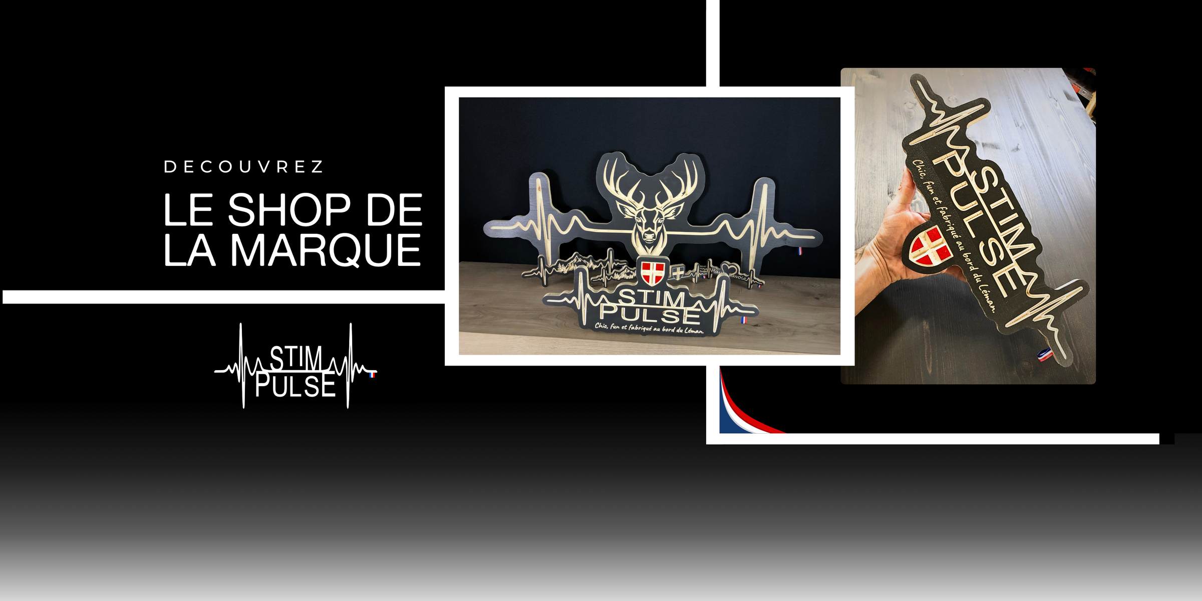 La marque de déco Chic et Fun qui parle à tous. Le bois usiné dans la masse par fraisage CNC, lasure française, gravure laser et la petite "french touch", notre drapeau tricolore.